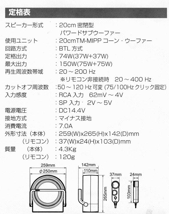 クラリオンのSRV212。20cm密閉型パワードサブウーファー。\9980で購入。