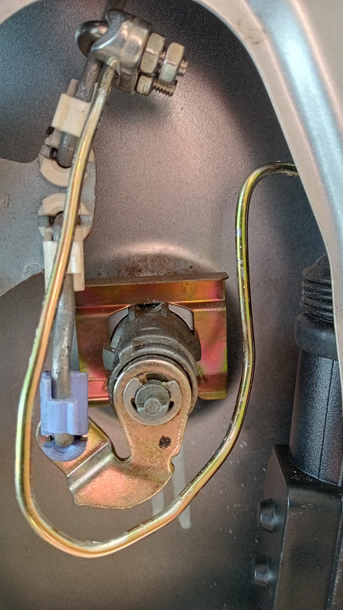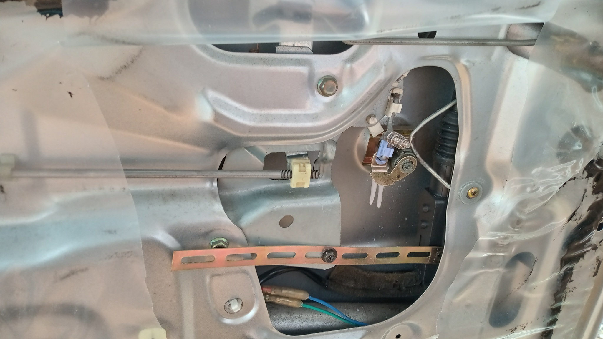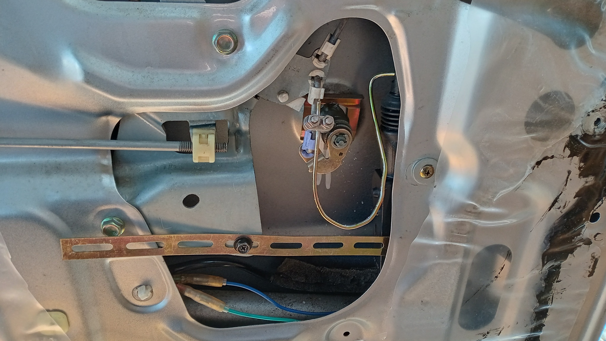 中を確認してみると激安アクチェーターから車両側のドアロックシステムに固定したロッドがワイヤーロープクリップから外れていた。