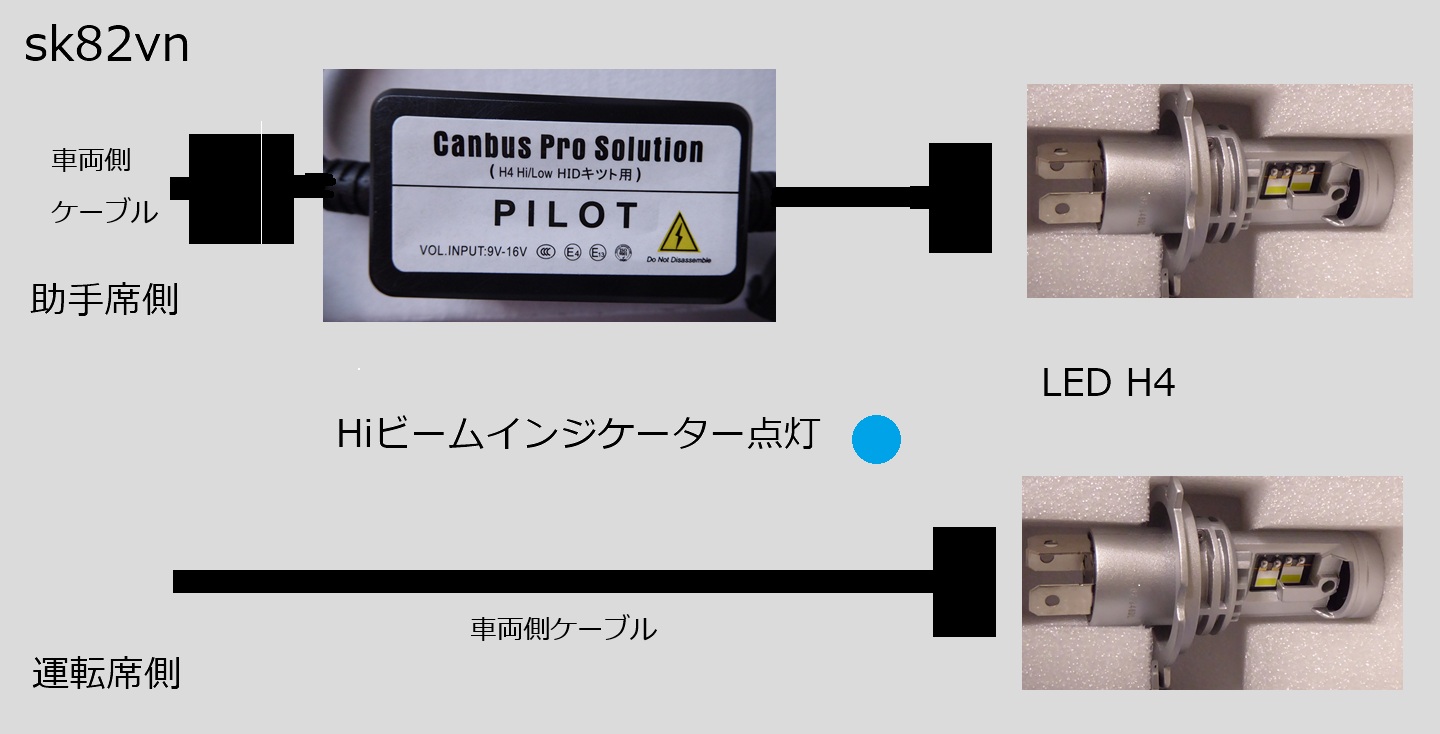 助手席側に1個バルブのカプラに噛ませ無事ハイビームインジケータは点灯した。