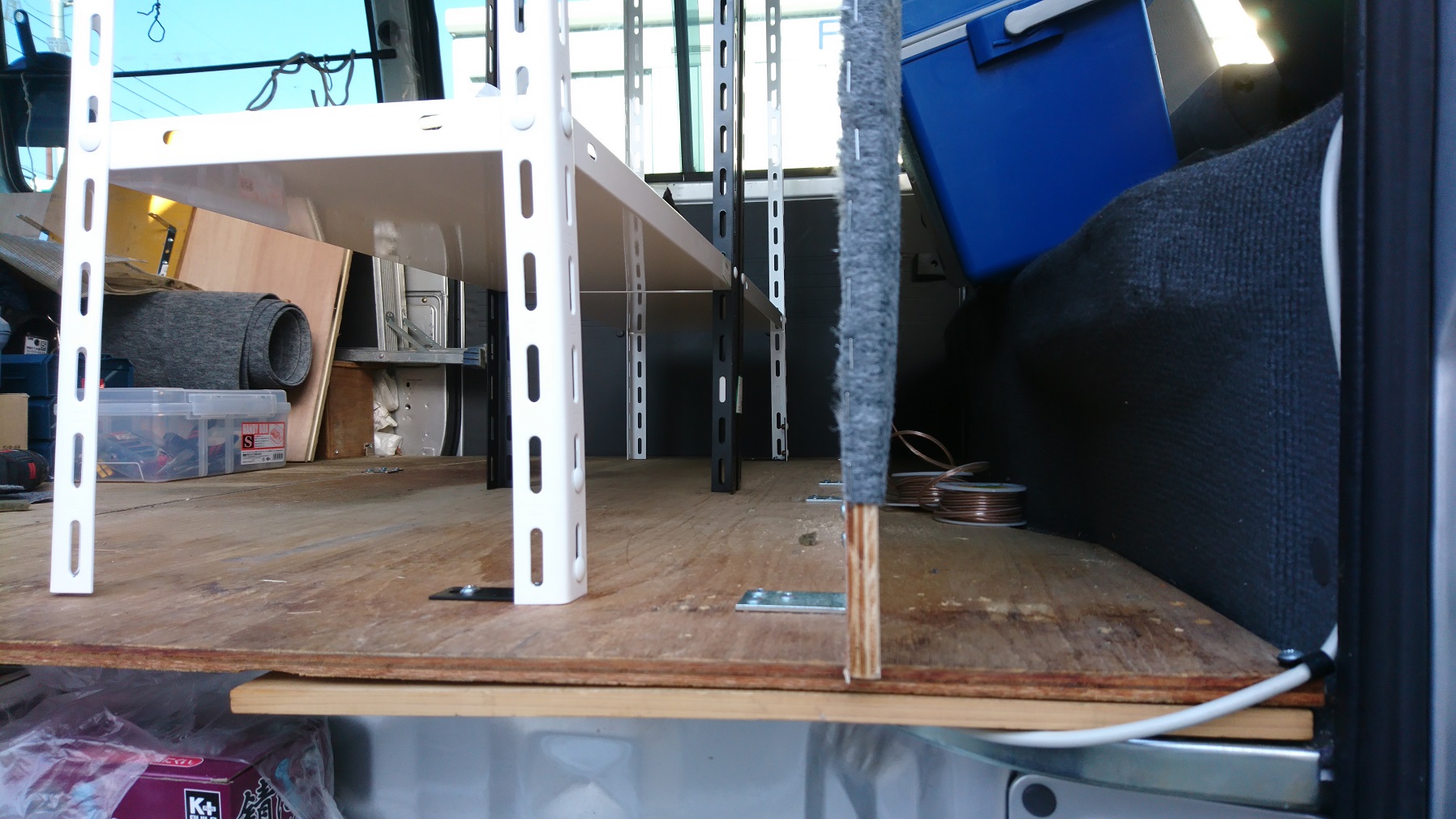 荷台は新たに、スチールラックで棚を作るのでいろいろ考えて作業中。