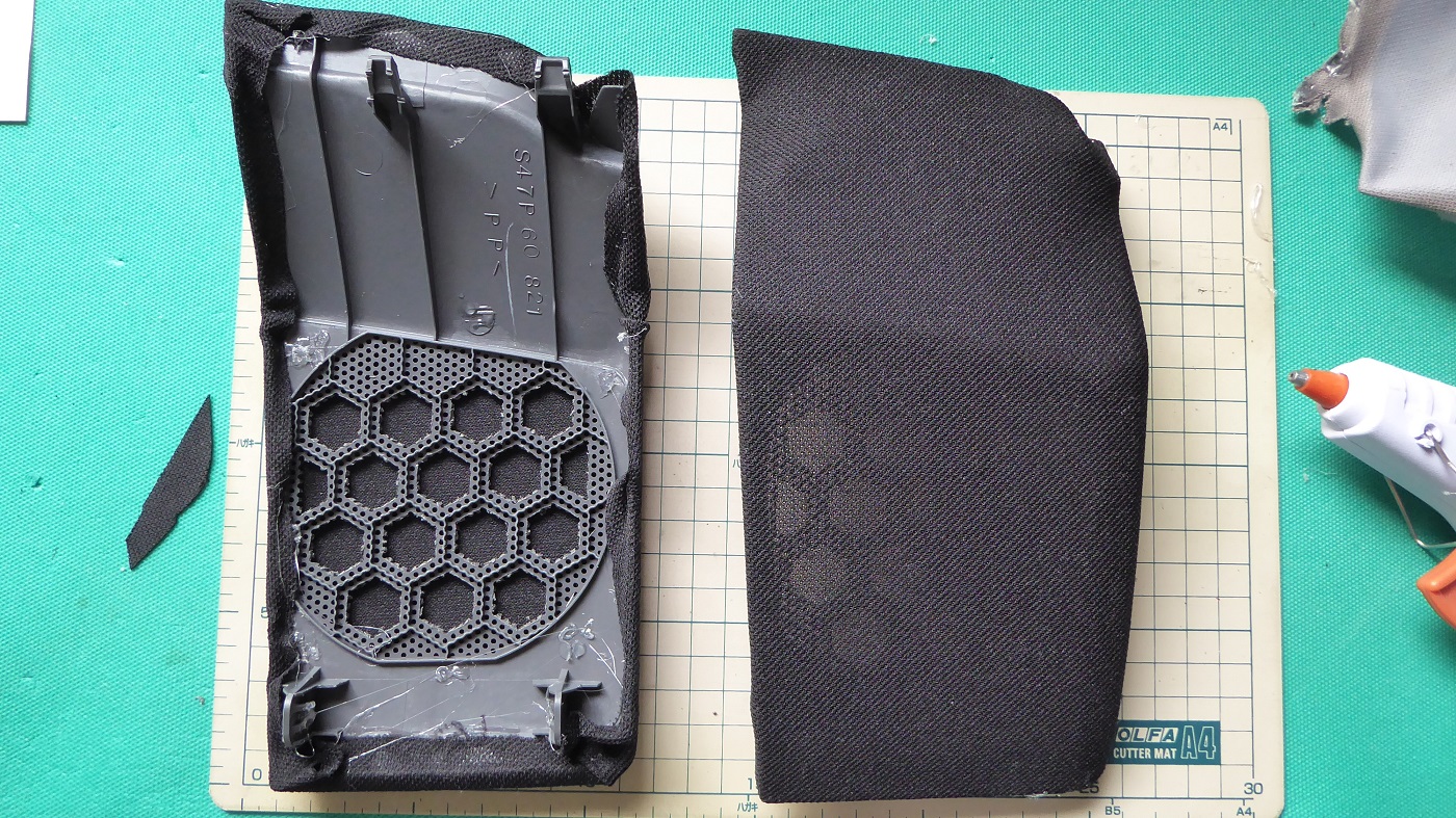 Yahooショッピングのラッキーアンティークから購入した音響用サランネットをグレーから黒に張り替えた。