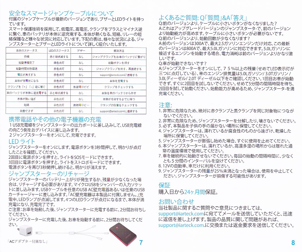 今回の商品は正常に動作した。ためしに不良品だった方の本体に代替品のジャンプケーブルのソケットを差し込んだら正常に動作した。どうもケーブルが不良品だったようだ。