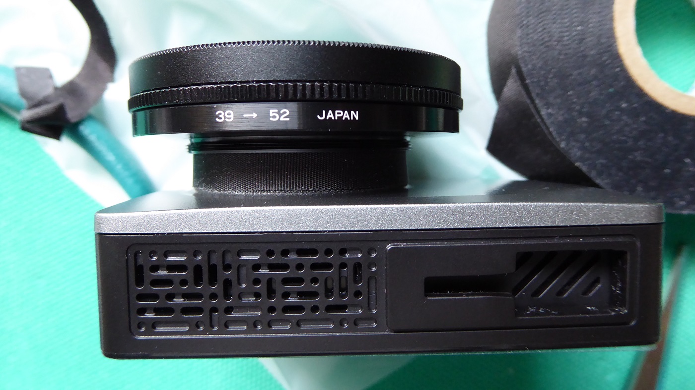 ただマイクロSDカードの出し入れ口が本体の左側にあるのでルームミラーのバーが邪魔だったので切り取った。