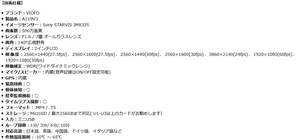 安くなっていたので¥9999でVIOFO A119 V3を購入。(偏光フィルター付き)