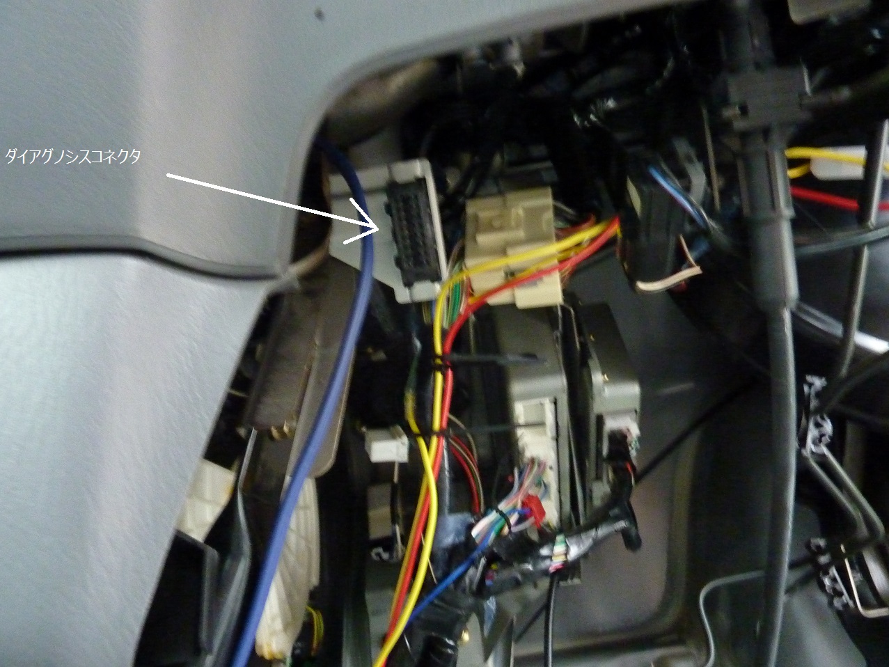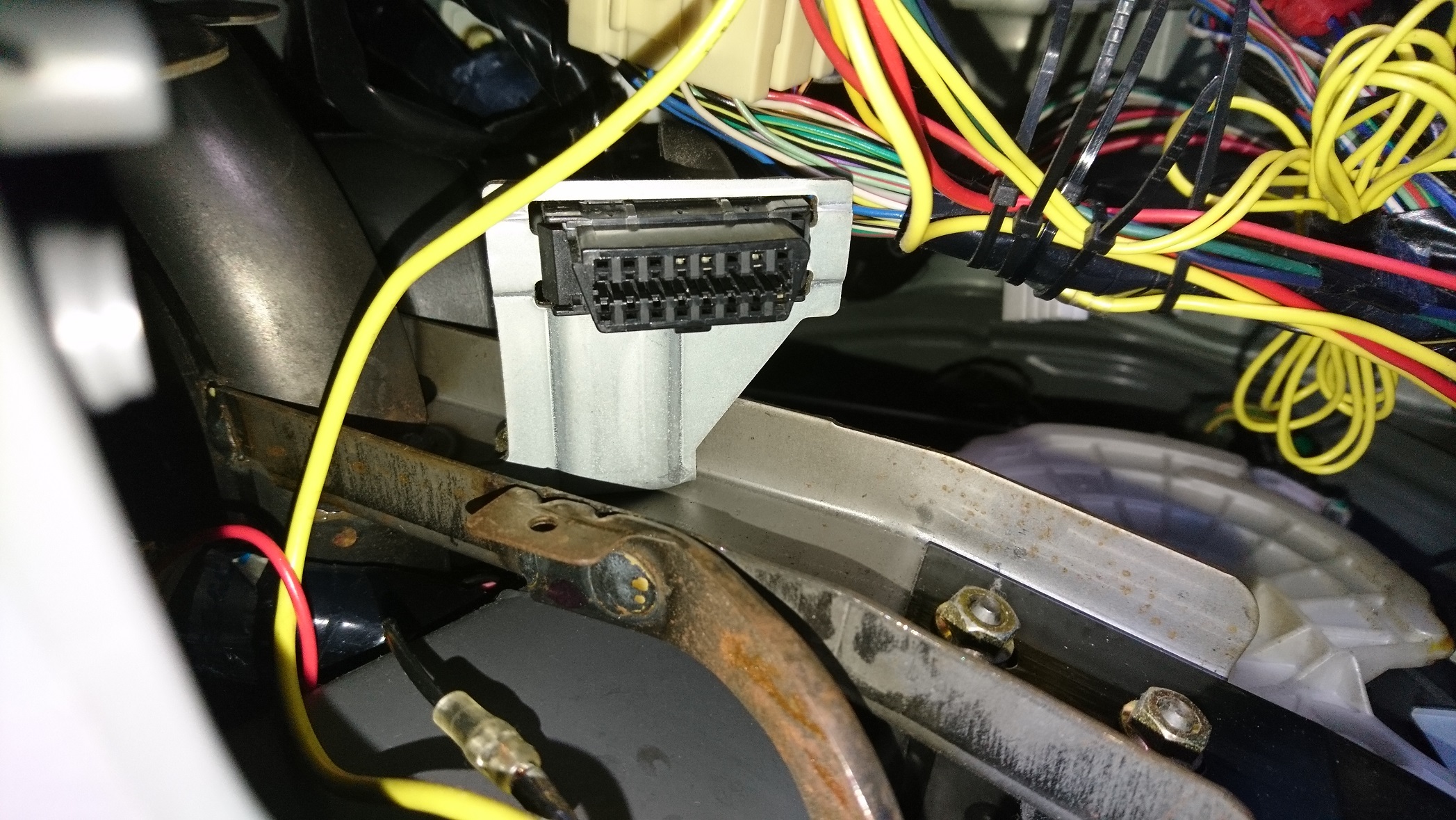 運転席から頭を下に突っ込むとエンジンコンピューターやら配線類がごちゃごちゃとあるが左側に黒いコネクタがここに挿してくださいと言わんばかりにこっちを向いていた。