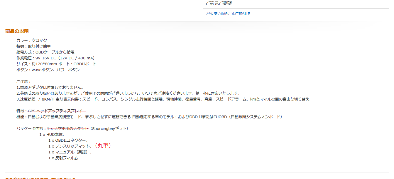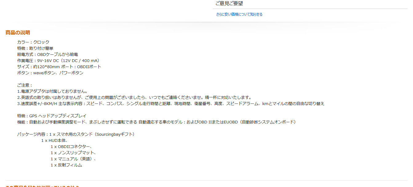amazonの商品説明に「特徴:GPS ヘッドアップディスプレイ 」とあるがGPSはついていない。