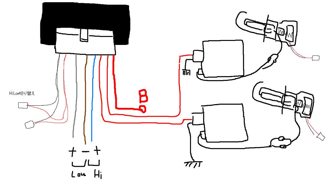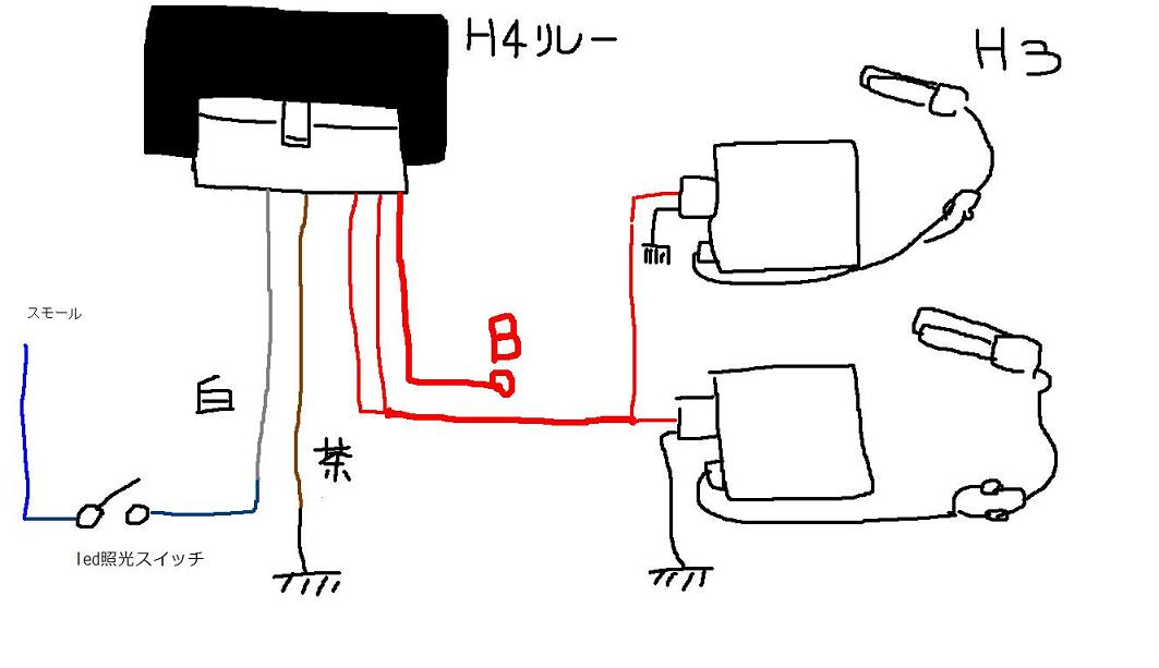 リレーはHID用H4リレーハーネスセットを改造したものだ。
