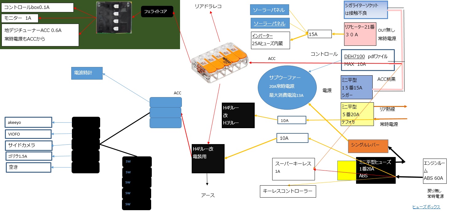 ACCからいろんな電装品をこれでもかというほど接続していたからかACCの電圧がいつも10Vから11Vを行ったり来たりしていた。