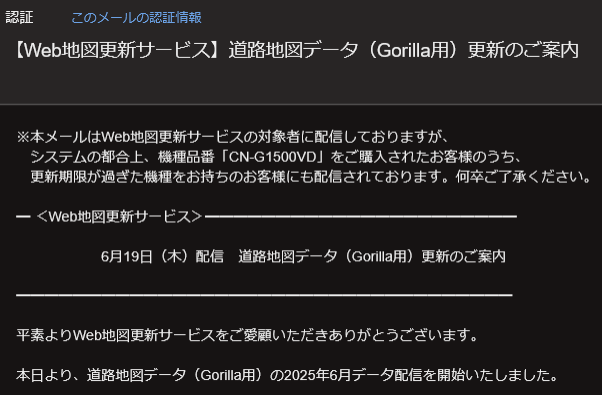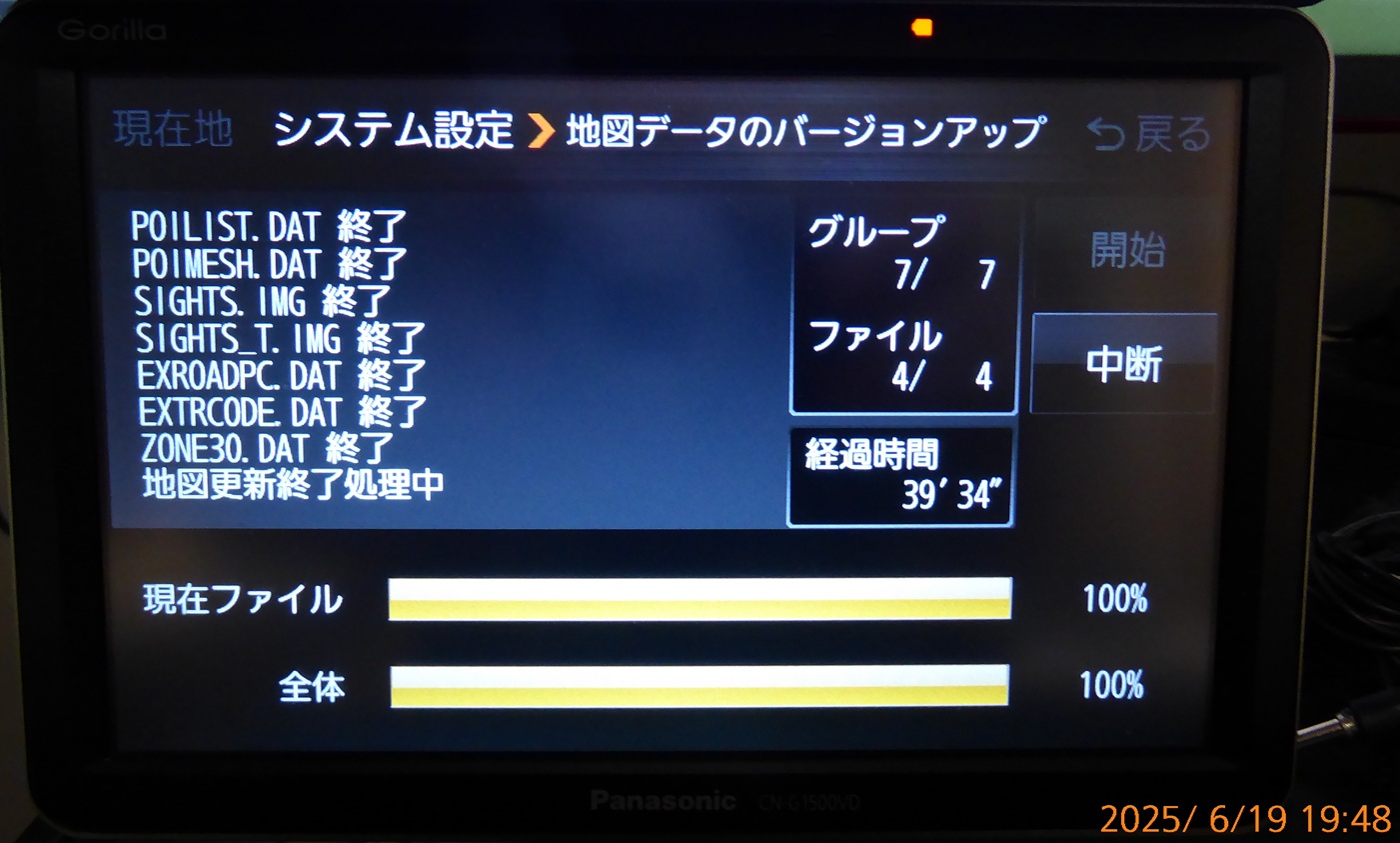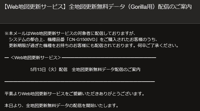 パナソニックゴリラCN-G1500VD全地図更新完了