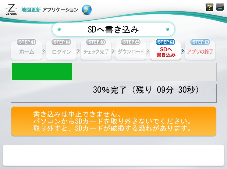 SDカードをゴリラから取り出しパソコンに差し込み地図更新アプリを立ち上げ。