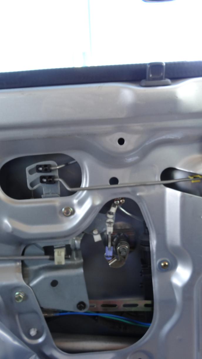 今回はロッドをペンチで切断した。今回は1時間くらいで終わった。ネジを何回かドアの中に落とした。そのたびに100均で買ったロッドアンテナの先に磁石の付いた便利な道具で何とか取りながら、作業は終わった。ギボシちゃんと差し込んだかなあ。最初仮接続のつもりだったからなあ。