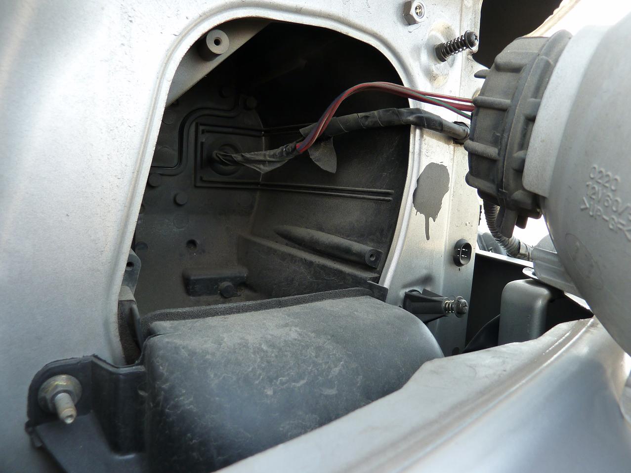 ヘッドライトを外した状態の、運転席側のバラスト取付位置。