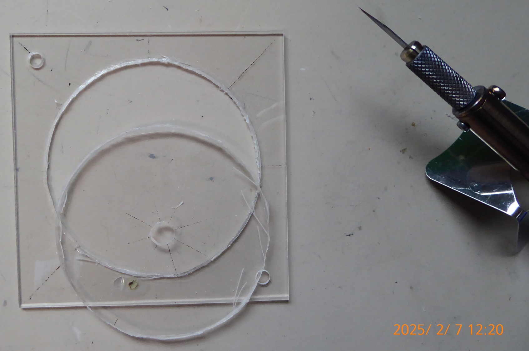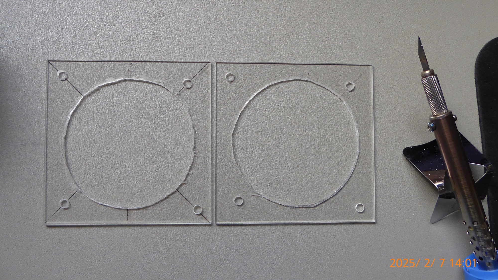 やっと穴が開いた。少し小さかった。ホットナイフで大きくした。