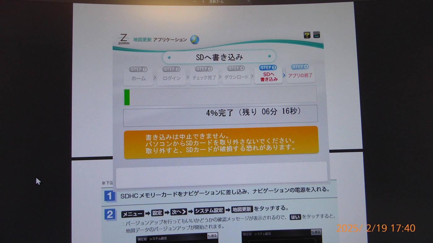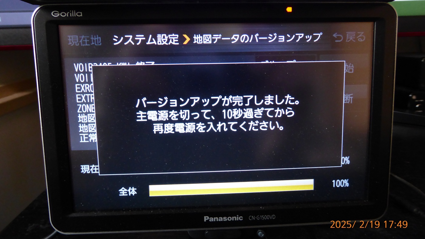 部屋にカーナビを持ってきて更新した。