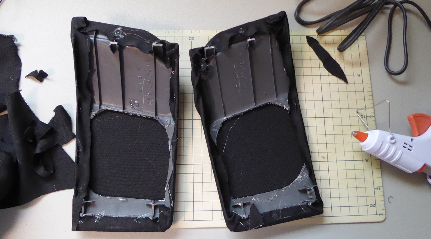 部屋でゴムを交換。ハサミでゴムをチョキン。余った30センチの2本のゴムがもったいないな。