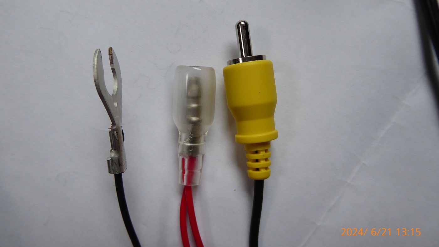 アース端子をギボシ端子に作り替えて差し替え。ACCは抜き替え。映像ピンも抜き替え。
