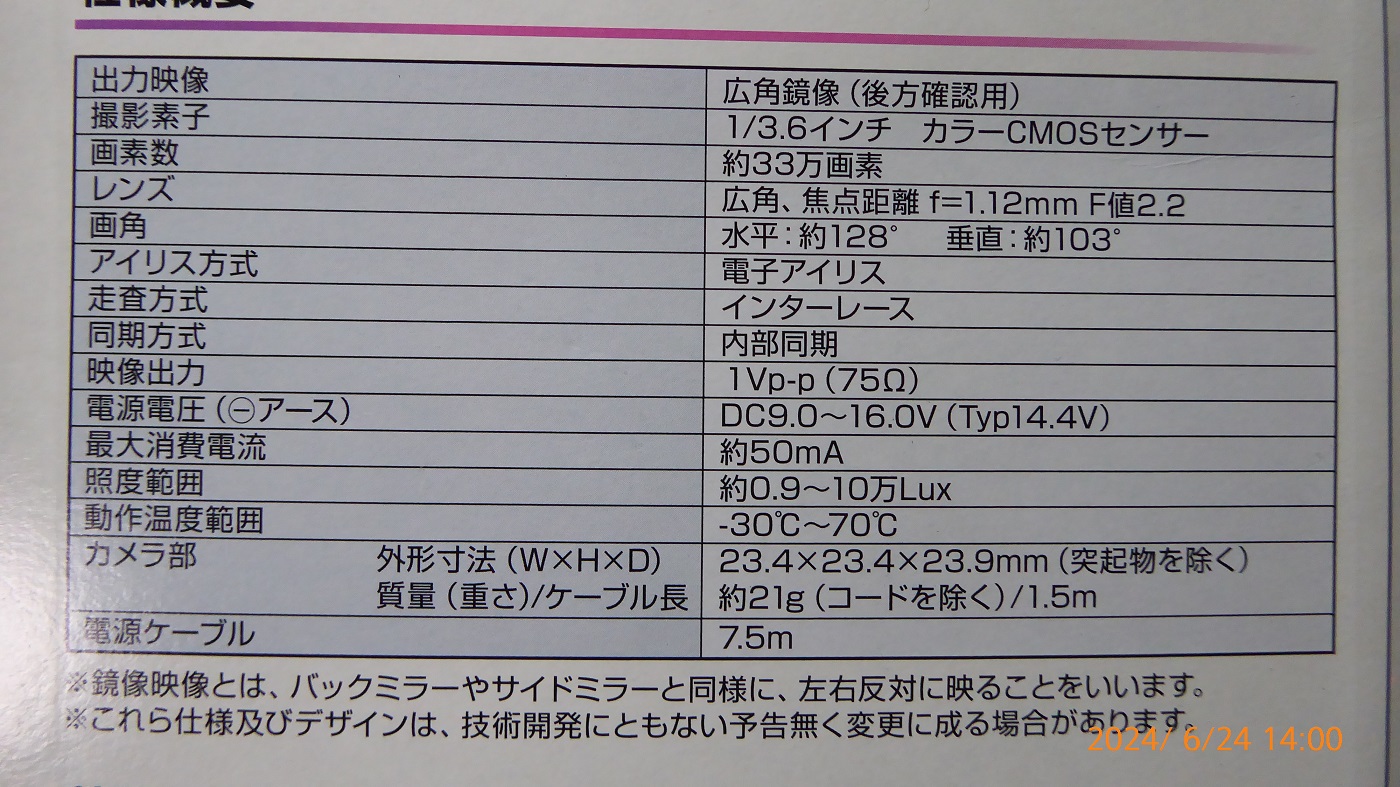 2011年1月27日¥11800で購入したバックカメラケンウッドCMOS-200が今日2024年6月19日とうとうモニターの画面の中央あたりが白っぽくなって見えなくなりました。カメラの表面はきれいなので中の何かがだめになったのかなと思います。