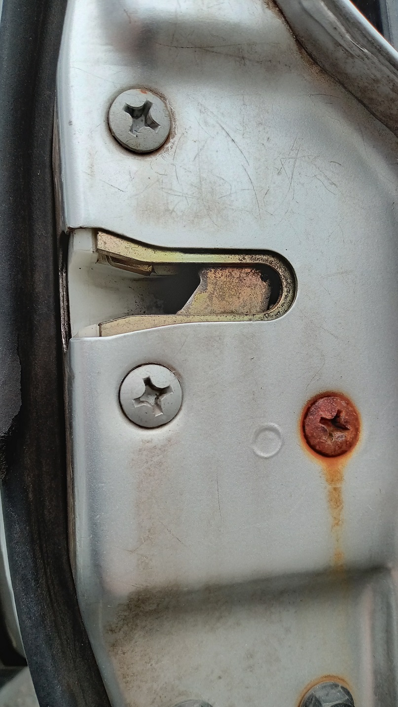 ラッチの本来ならプラスチックの黒いカバーが付いているはずの部分が何もなくて金属が見えているのでラッチを交換するしかないかも。作業中腰をやった。あうあう。