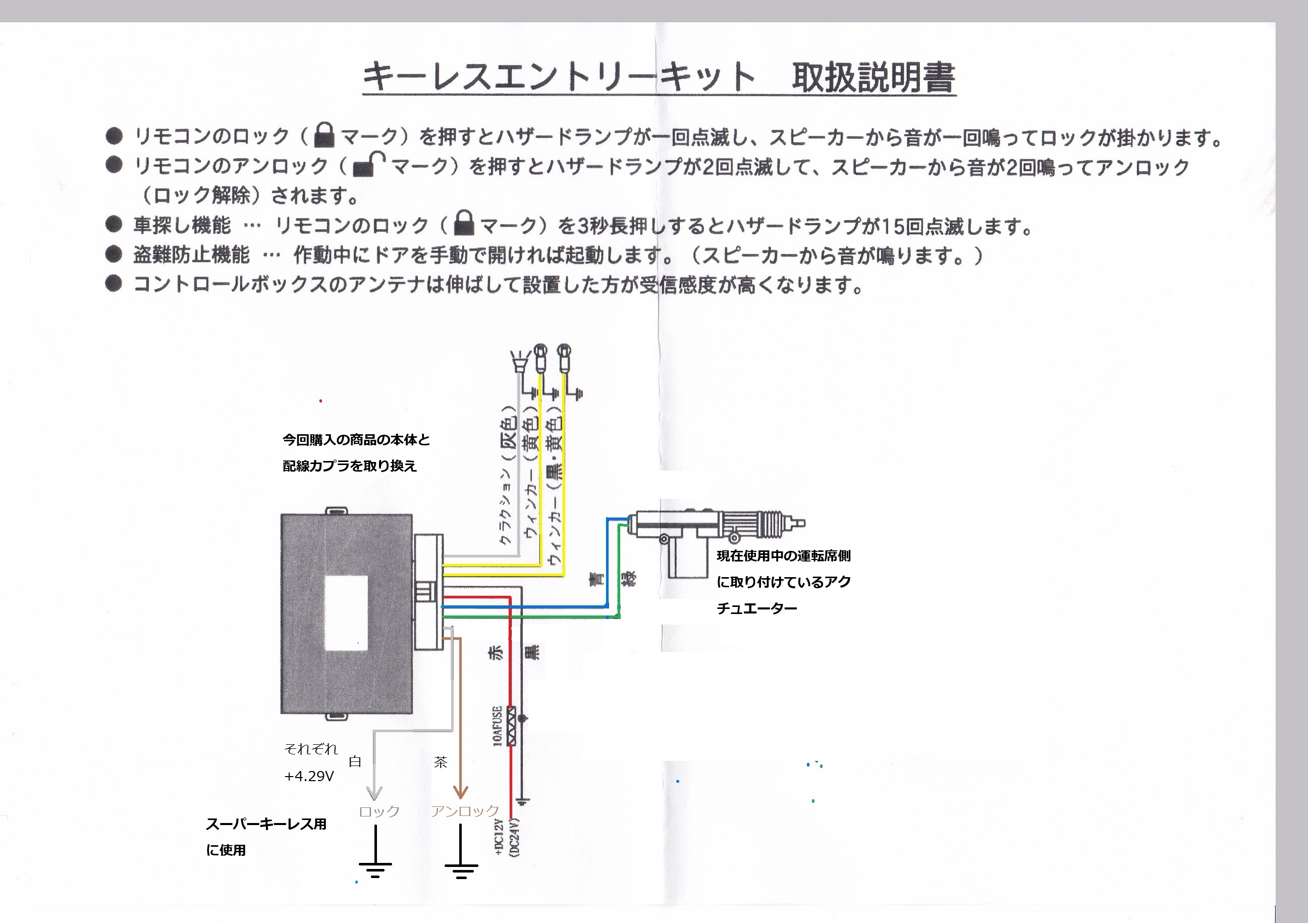 茶色と白の線はスーパーキーレスと接続。