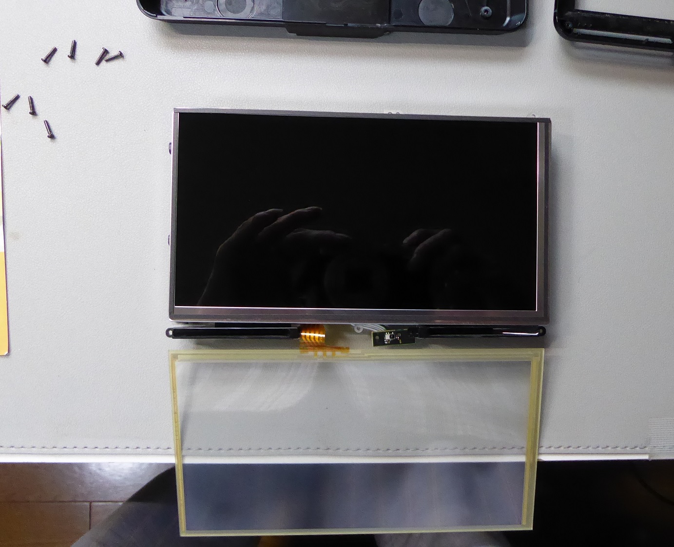 ただ一番表のタッチパネルを外した状態で見るとグレア画面になるが結構画面が綺麗に見えたので外した状態で組み立てた。
