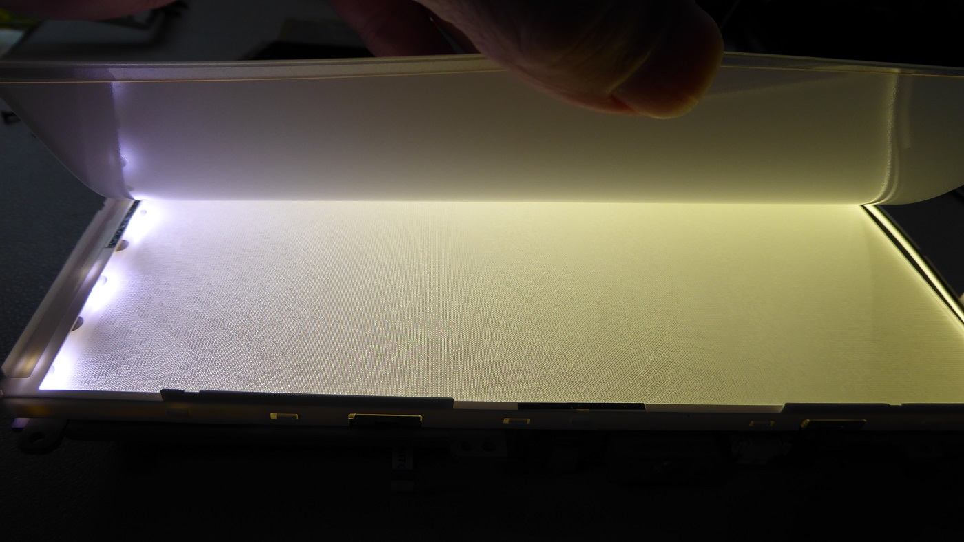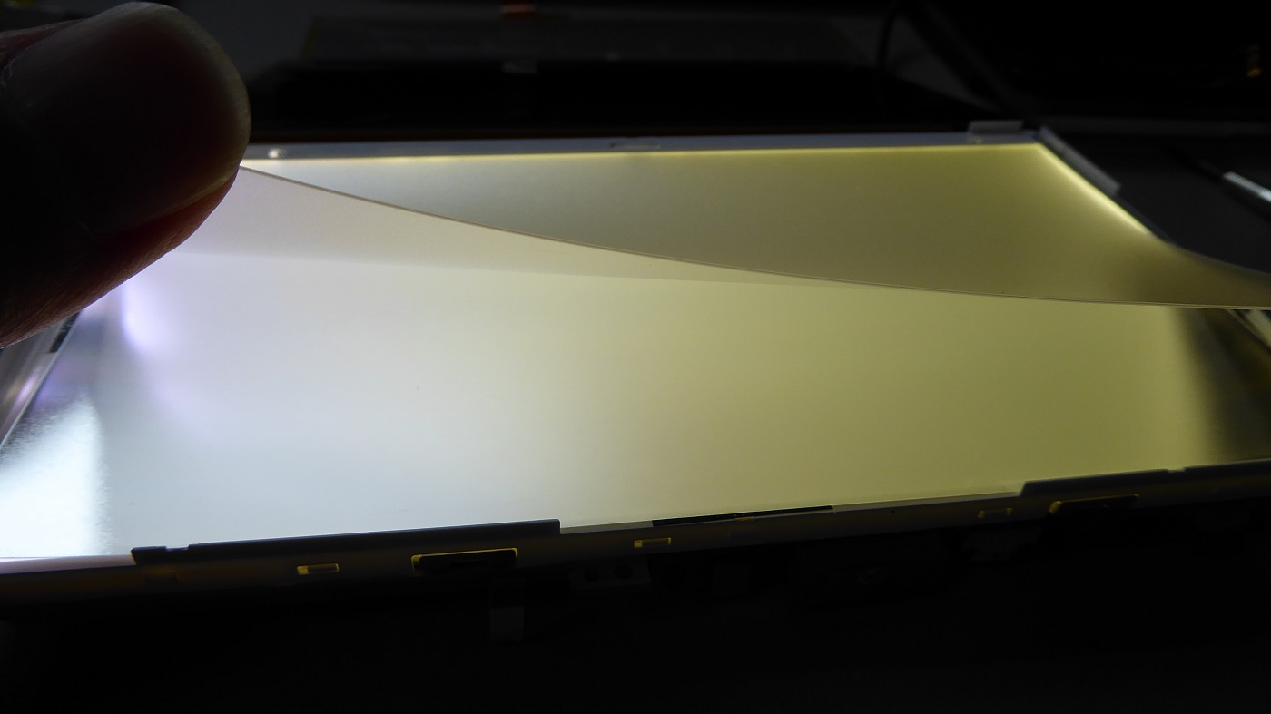 そして金属の枠を外しさらにプラスチックの白い枠を指で広げながらフイルムのようなものを持ち上げてみた。