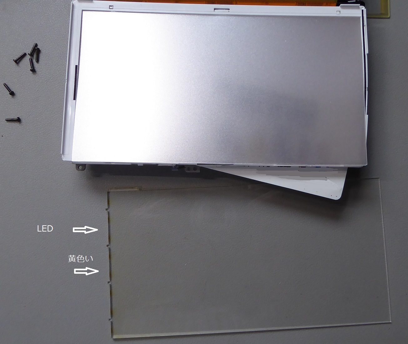 取り出してみるとLEDが当たる部分が黄色くなっていた。