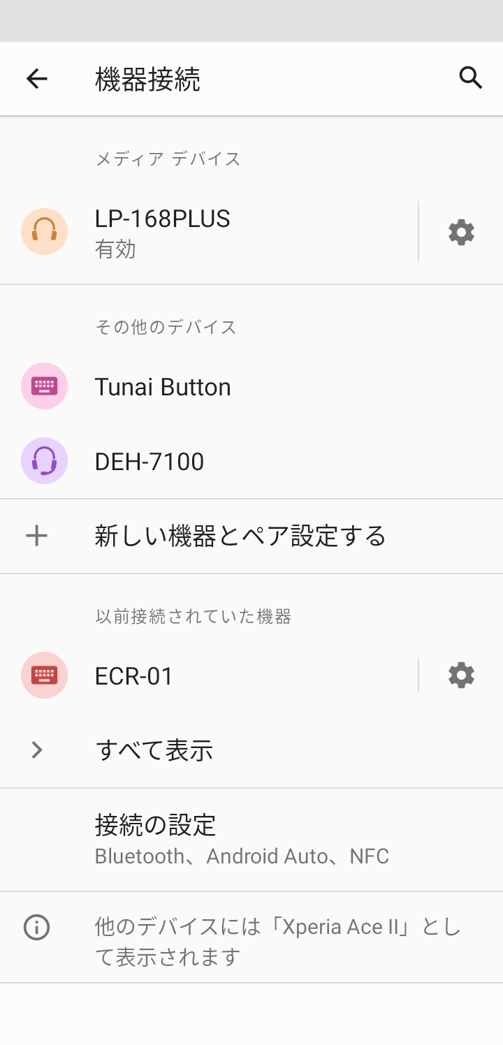 プロトコルが何だったのか確認したかったので機種変前に使っていたスマホXperia X compact SO-02Jを接続してみた。Androidバージョンは8。