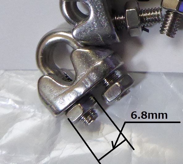 ワイヤーロープクリップのナットを締めるのに今までラジオペンチやペンチを使用していたが締めにくかったのでスパナを買おうと思いナットの寸法を調べたがわからなかったので適当に4ミリを注文。