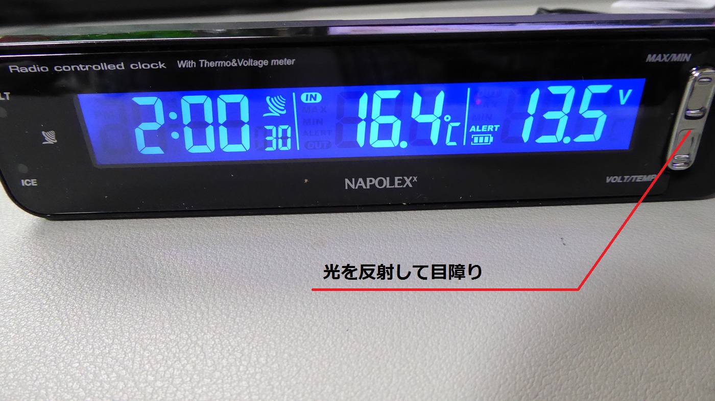 部屋でテストしたところ正常に電波時計も受信しバックライトも点灯し電圧・内温度・外温度も正常に表示されました。