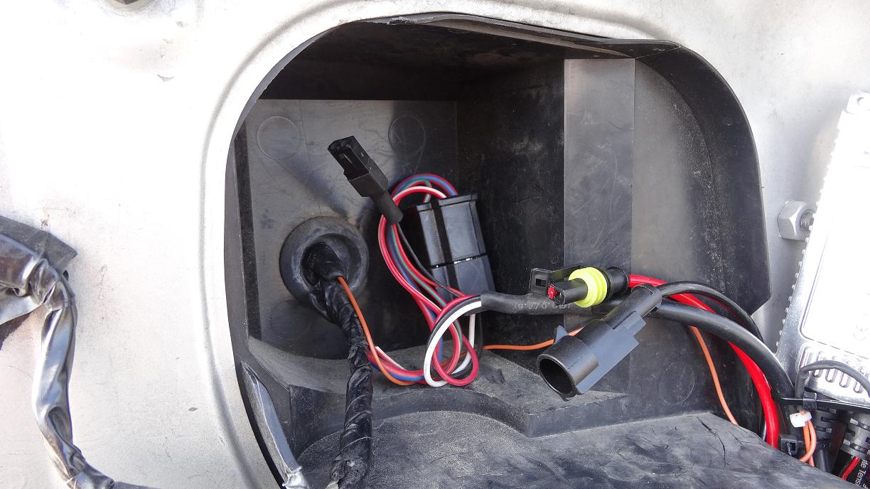 元のバラストから電源側カプラを抜いて(H4用Hi/Lo切換えコントローラーリレーレスアダプター