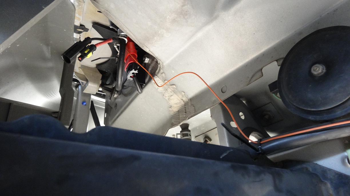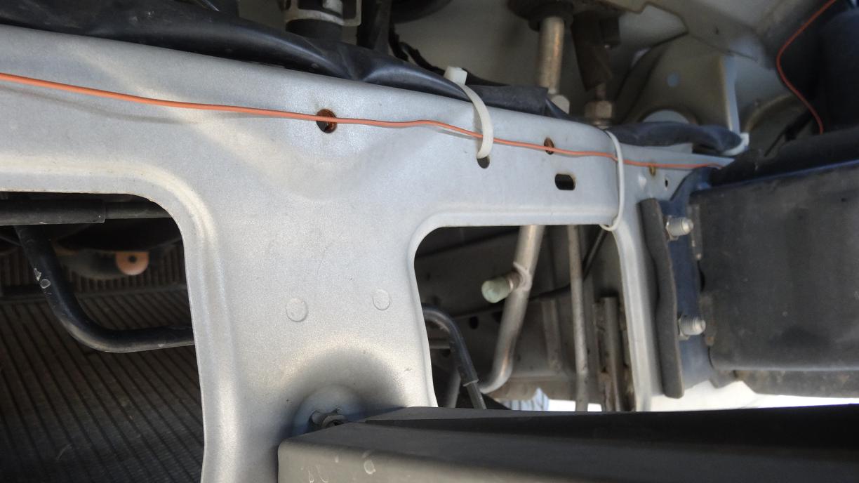 そこから助手席側のライト裏まで、もう一本のリモコン線を配線。