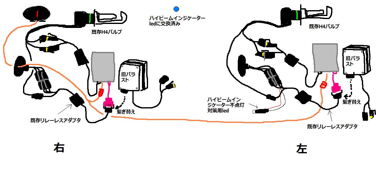 で、もう予備のデジインのバラストが無いので、今年の1月に購入して結局使用していなかった一年保証!ワンピース PIAAタイプバーナー H4 Hi/Low切替 超薄型軽量バラスト HIDコンバージョンキット 6000k 12V車用[Bバラ]のバラストを使用。