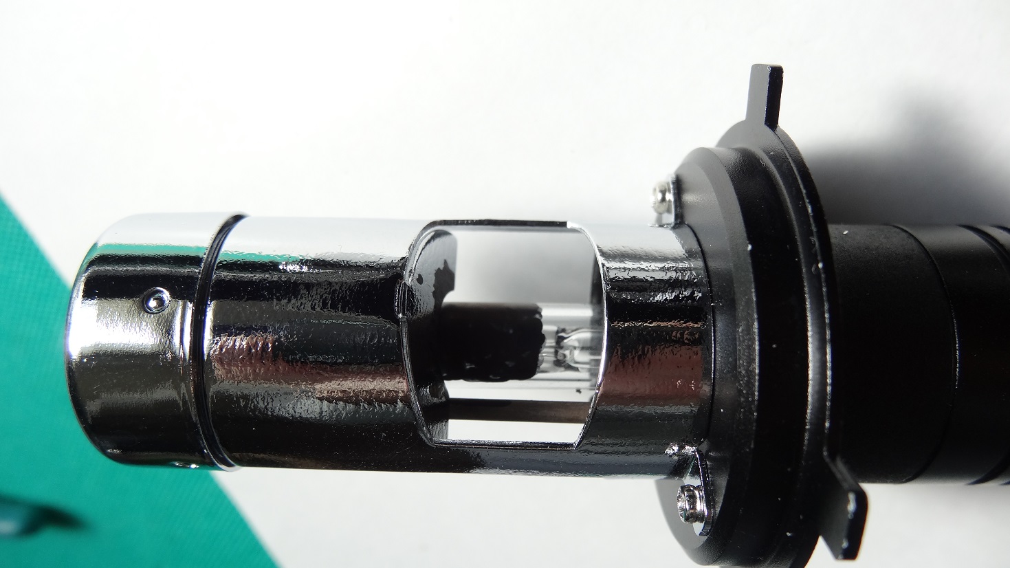 グレア対策の為、オキツモの耐熱マーカーでHi側へ漏れないようにガラス部分をペイント。