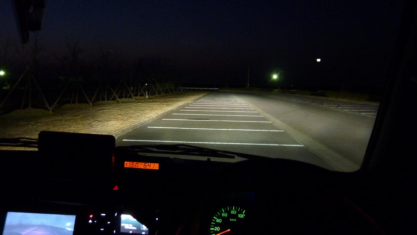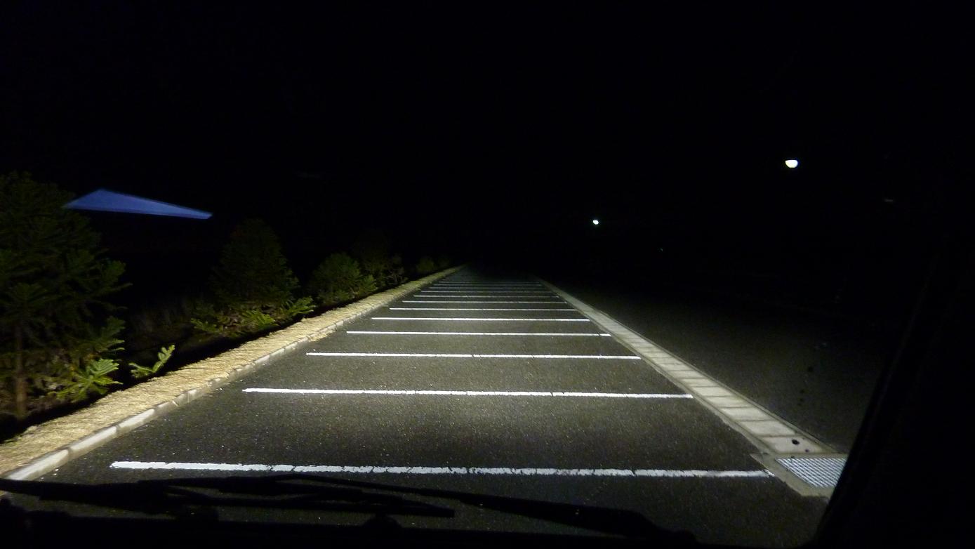 そして夜の画像。かなり光軸が下がっている。まるでフォグランプのようだ。