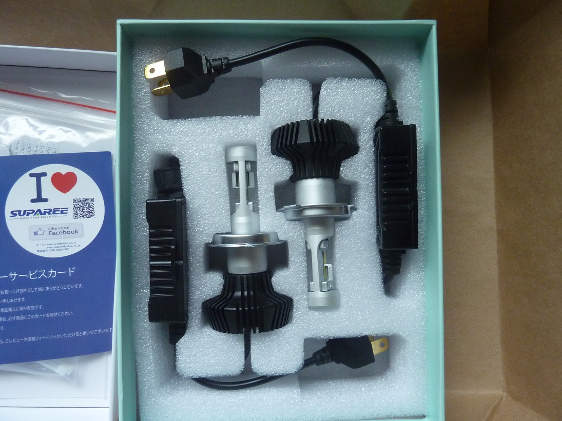 参考としてSUPAREEのファンレスLED H4の助手席側と運転席側のLow