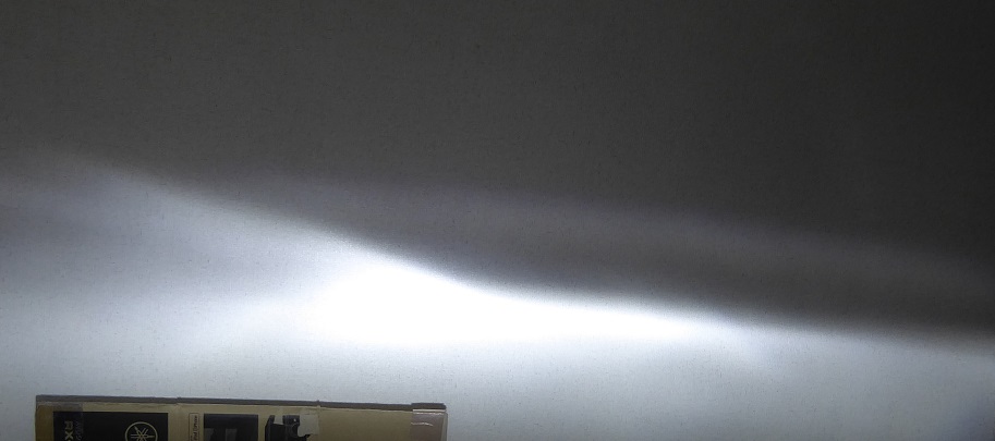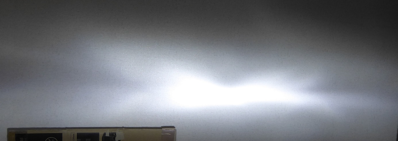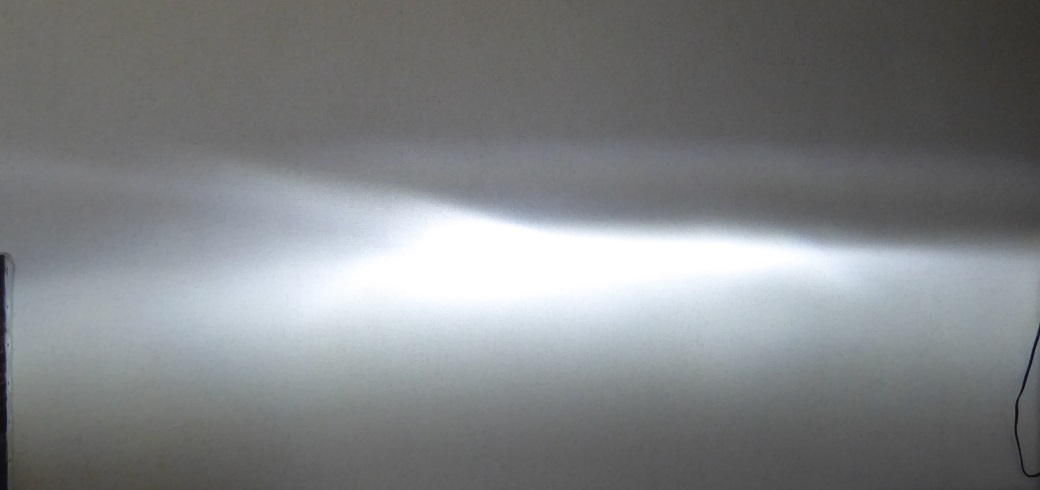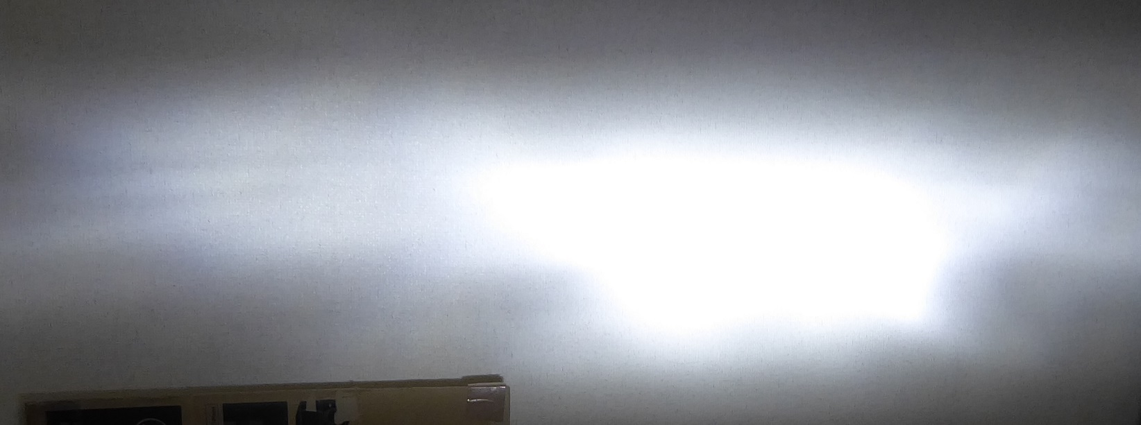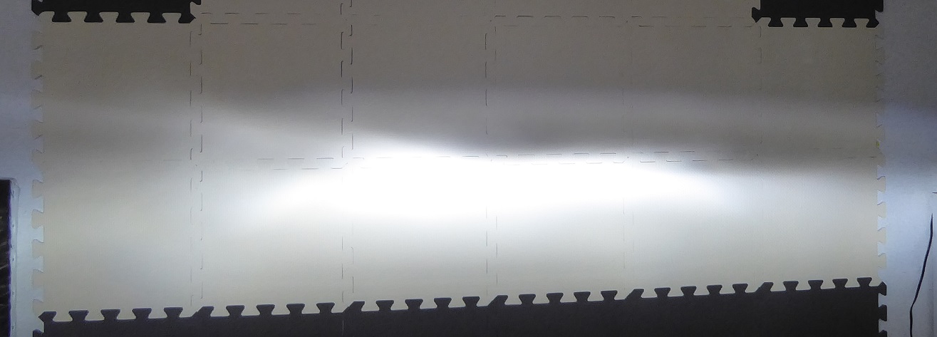 早速車からヘッドライトを外してきて部屋で配光テストをしてみた。