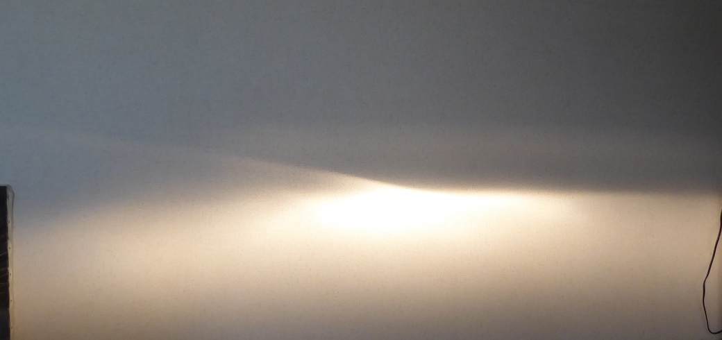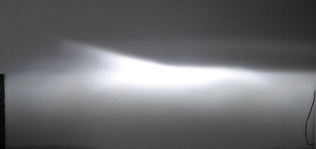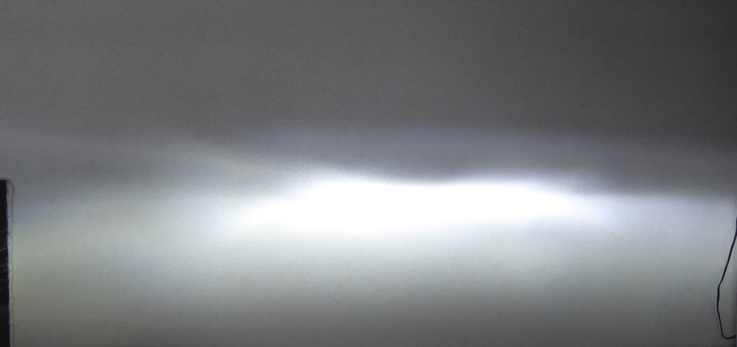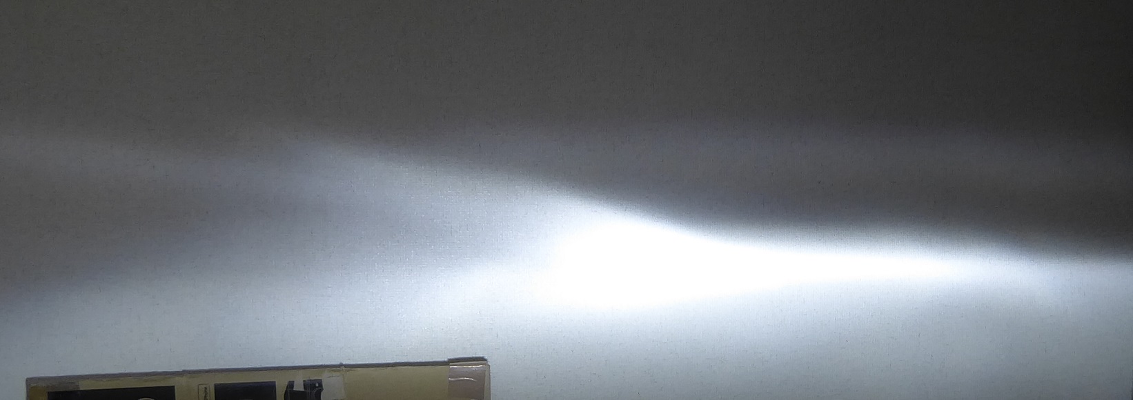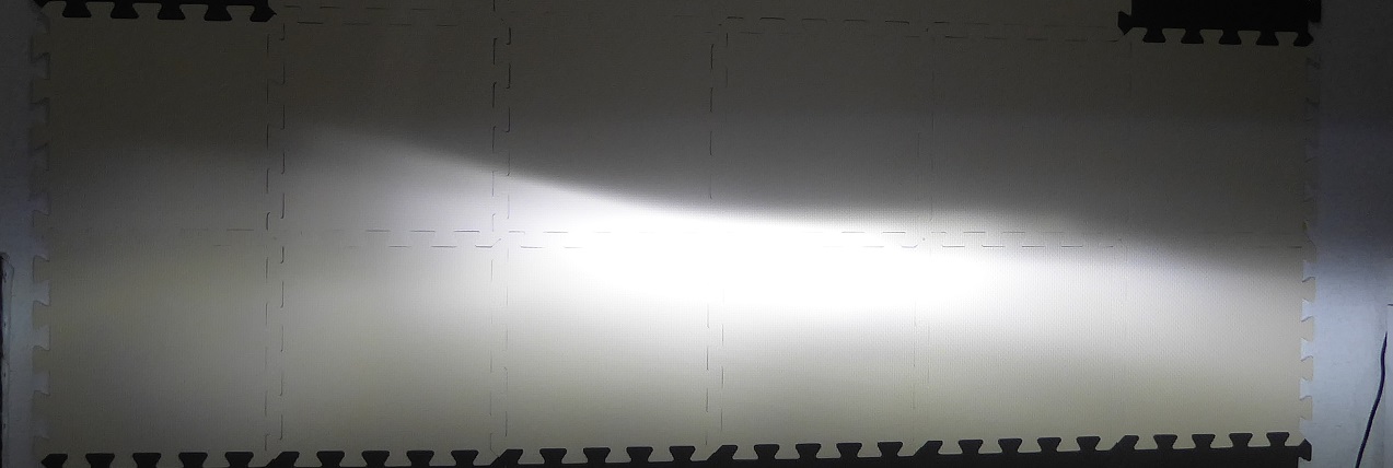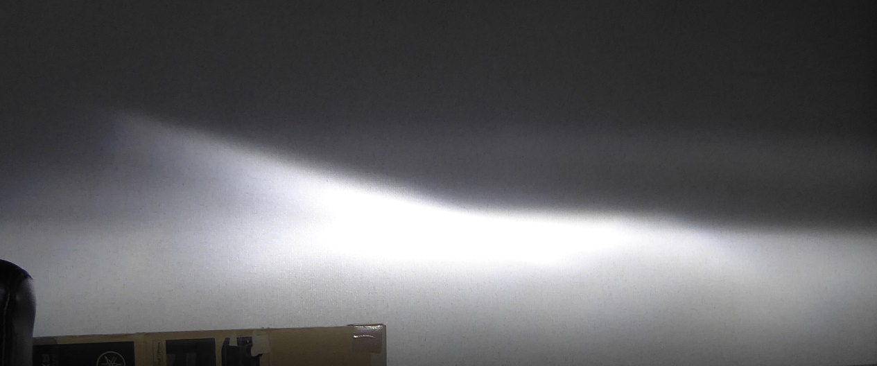 早速車からヘッドライトを外してきて部屋で配光テストをしてみた。