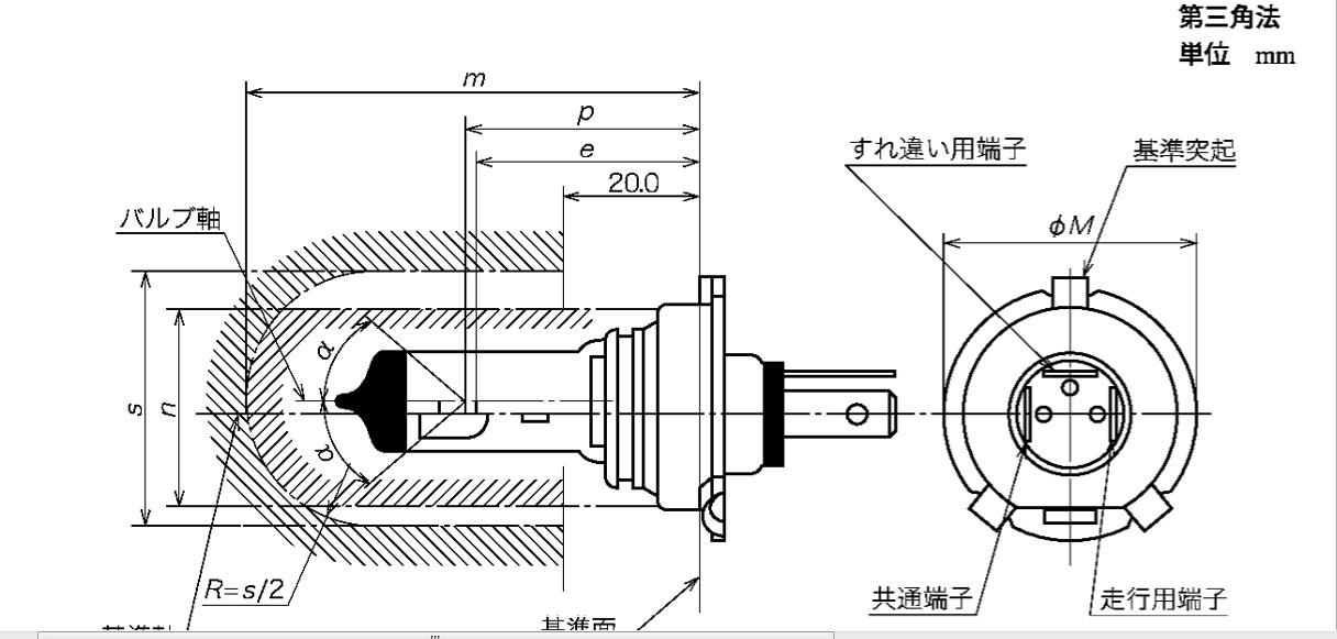 日本工業標準調査会:データベース検索-JIS検索で自動車用電球類-第1部:寸法,電気的・光学的初特性JISC7506-1を見ると逆のような・・・