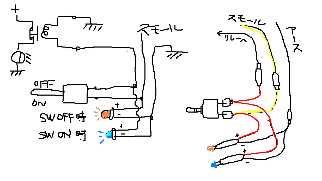 これならスモールを点けるとスイッチの場所が分かり、しかも眩しくなく、スイッチを入れると青いledが点灯し消し忘れ防止にもなる。